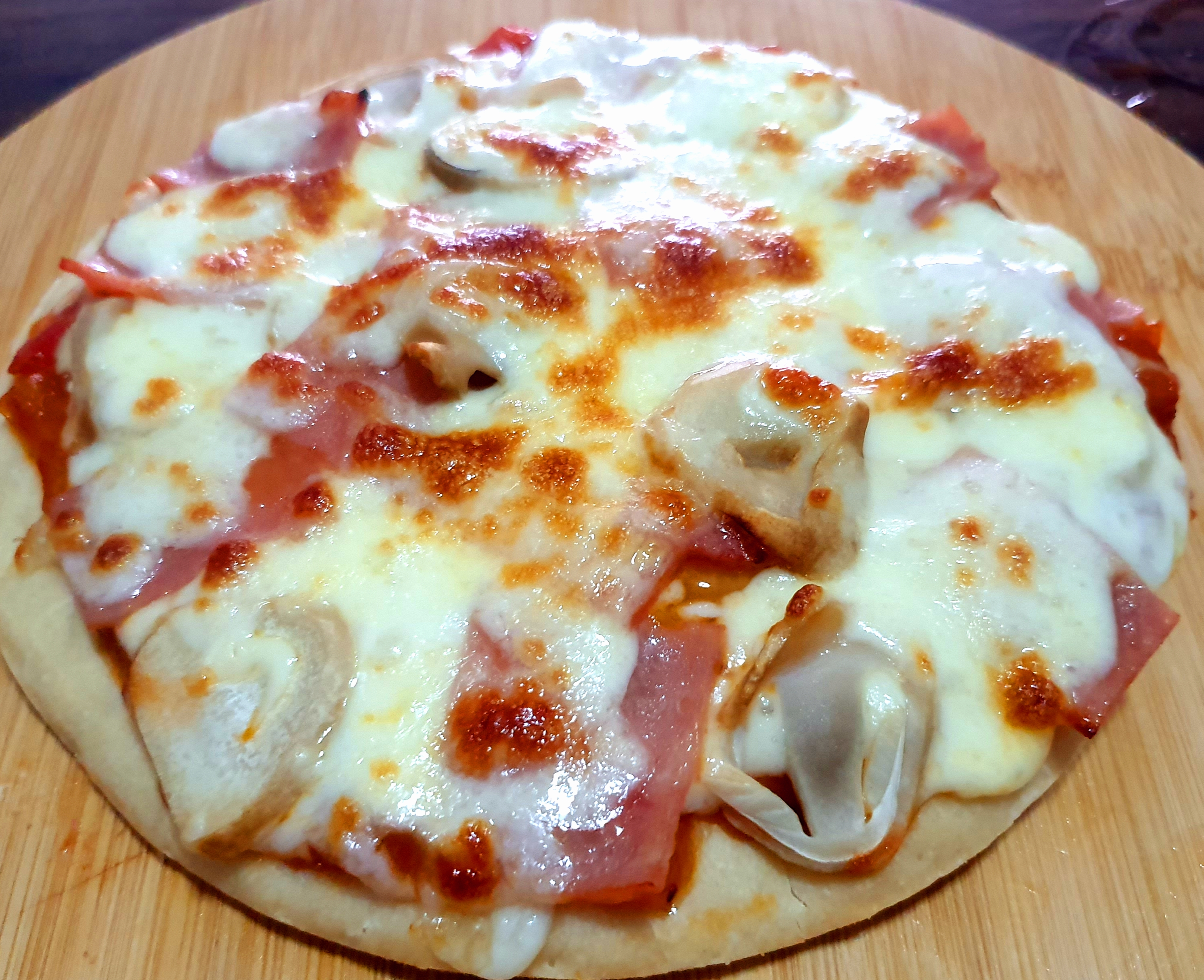 ทำจากแป้งพิซซ่าและซอสพิซซ่าสูตรพิเศษ โรยหน้าด้วยมอสซาเรลล่าชีส ใส่ท็อปปิ้ง เป็นแฮมไก่ และเห็ด โรยหน้าทับด้วยมอสซาเรลล่าชีส อีก 1 ชั้น