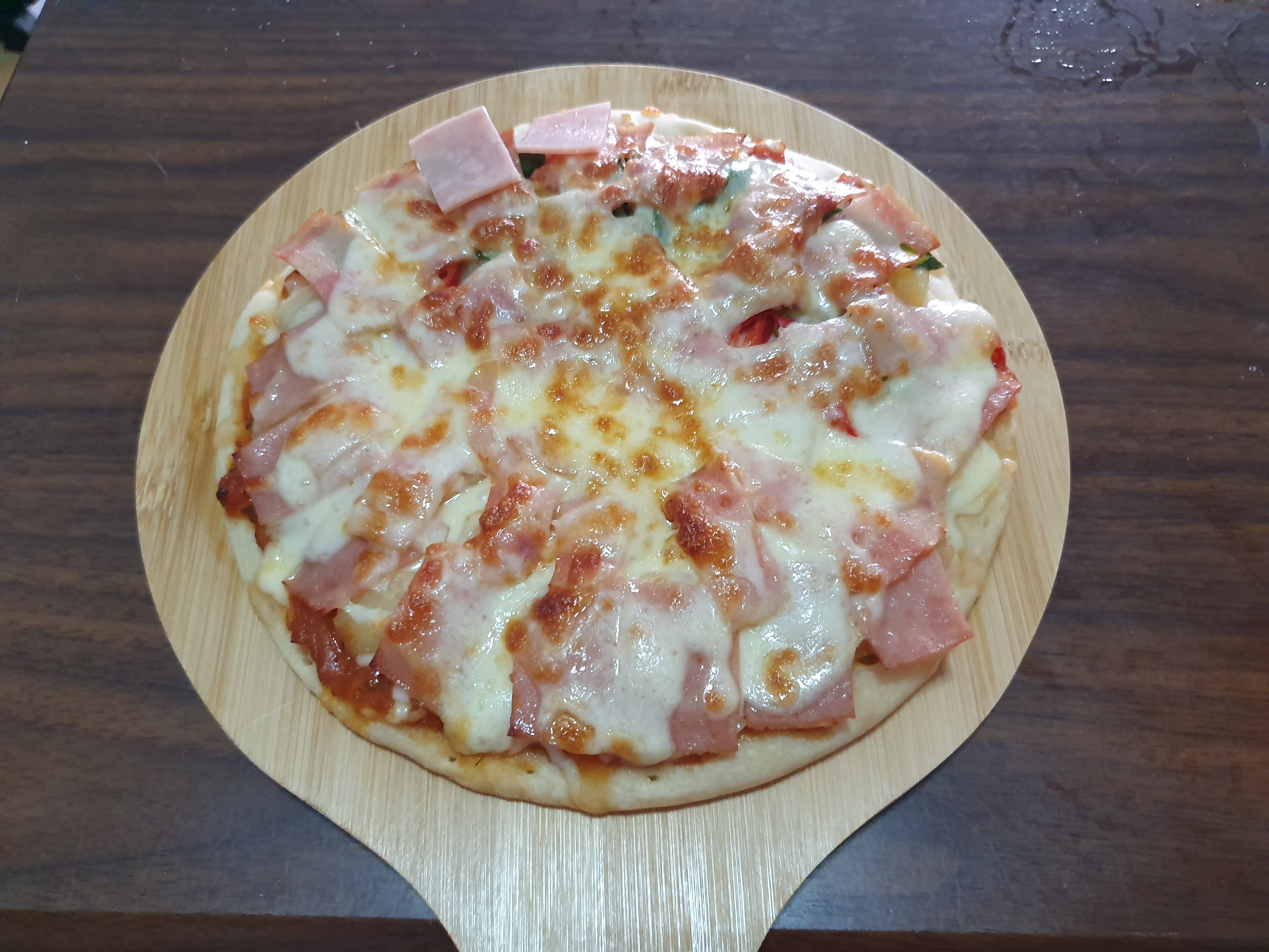 ทำจากแป้งพิซซ่าและซอสพิซซ่าสูตรพิเศษ โรยหน้าด้วยมอสซาเรลล่าชีส ใส่ท็อปปิ้ง เป็นแฮมไก่ โรยหน้าทับด้วยมอสซาเรลล่าชีสอีก 1 ชั้น