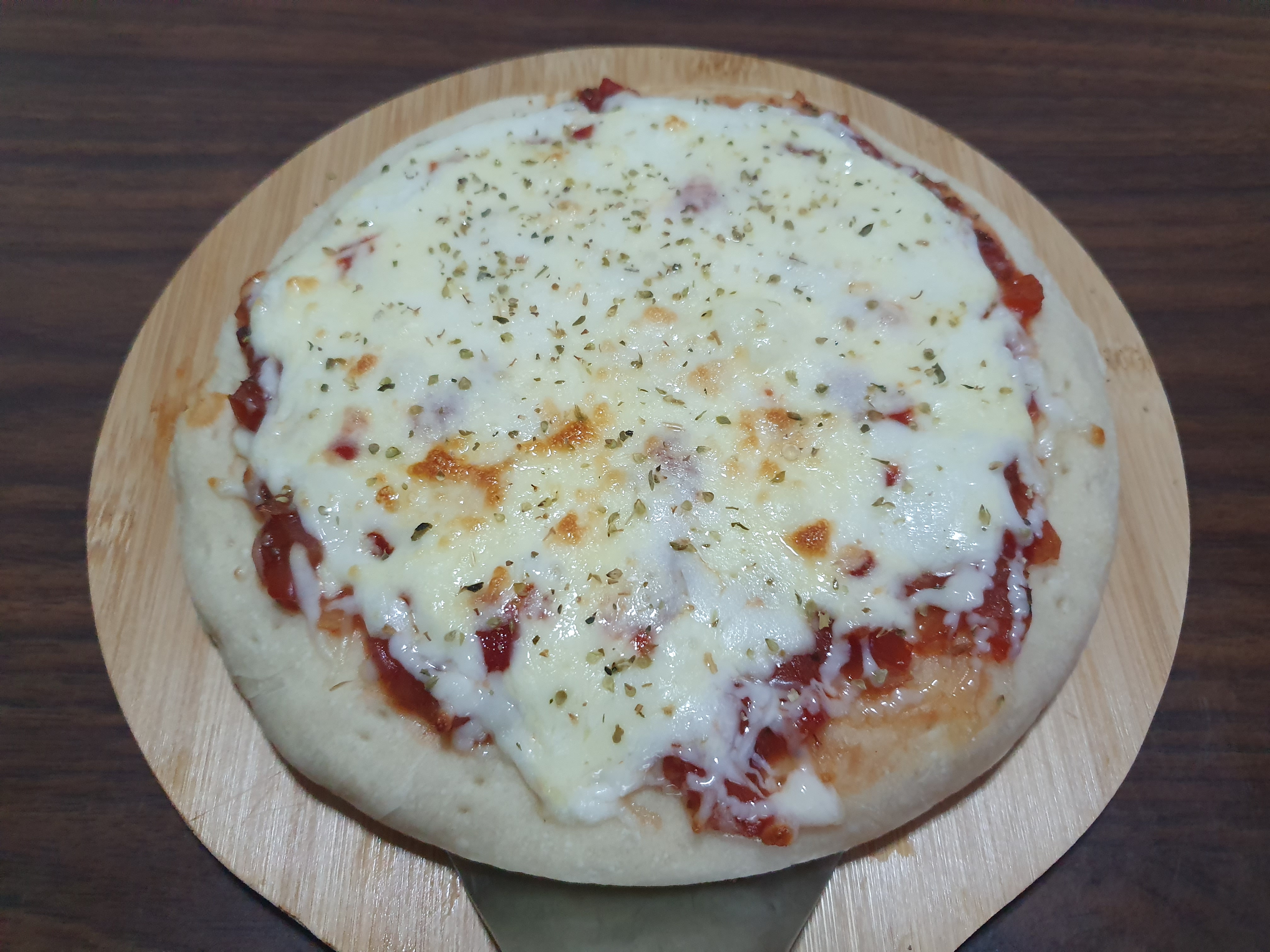 ทำจากแป้งพิซซ่า และซอสพิซซ่าสูตรพิเศษ โรยด้วย มอสซาเรลล่าชีส