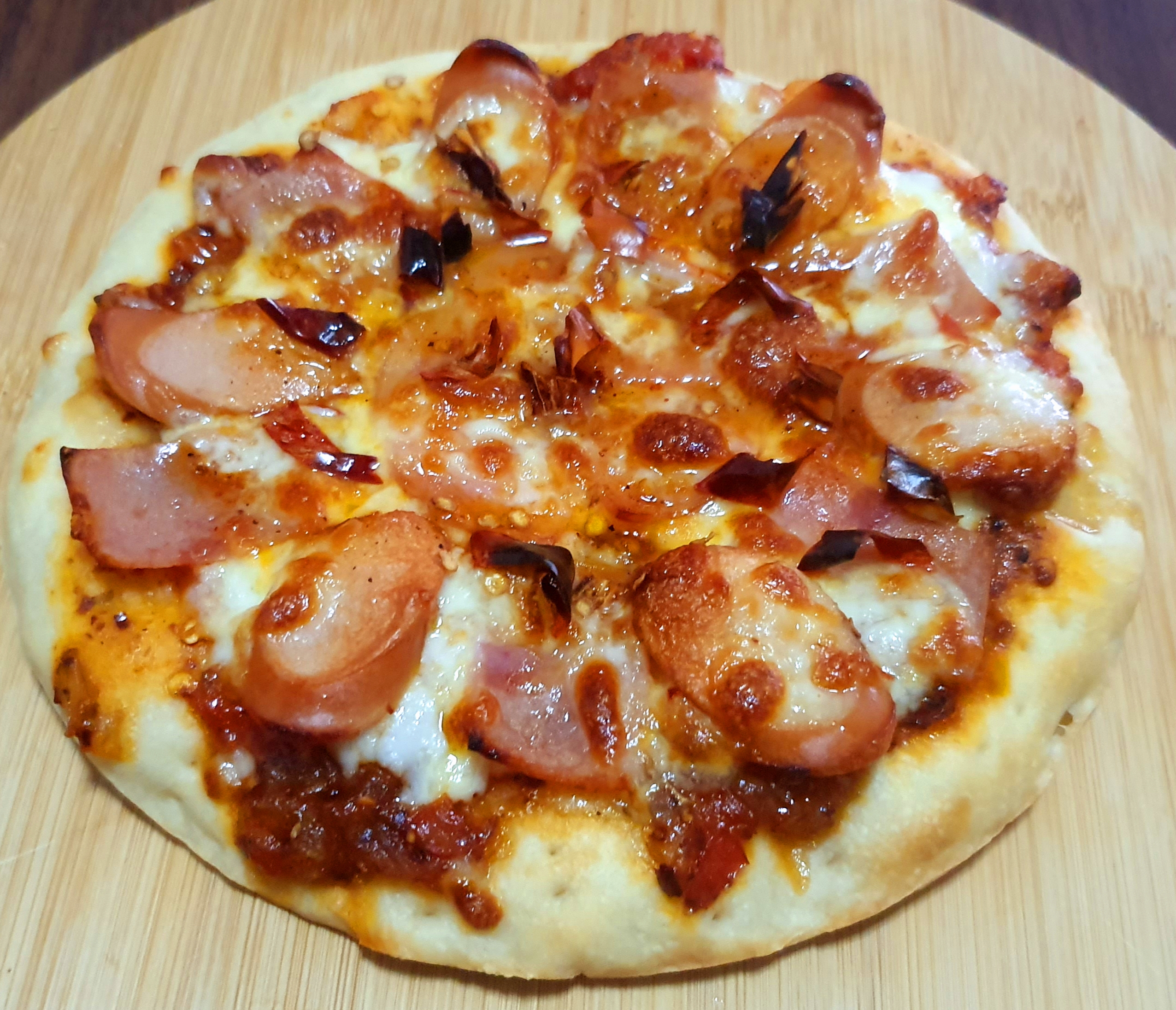 ทำจากแป้งพิซซ่า และซอสพิซซ่าสูตรพิเศษ โรยหน้าด้วยมอสซาเรลล่าชีส ใส่ท็อปปิ้ง เป็นแฮมและไส้กรอกรมควัน ในซอสหม่าล่า และโรยหน้าด้วยมอสซาเรลล่าชีสอีก 1 ชั้น