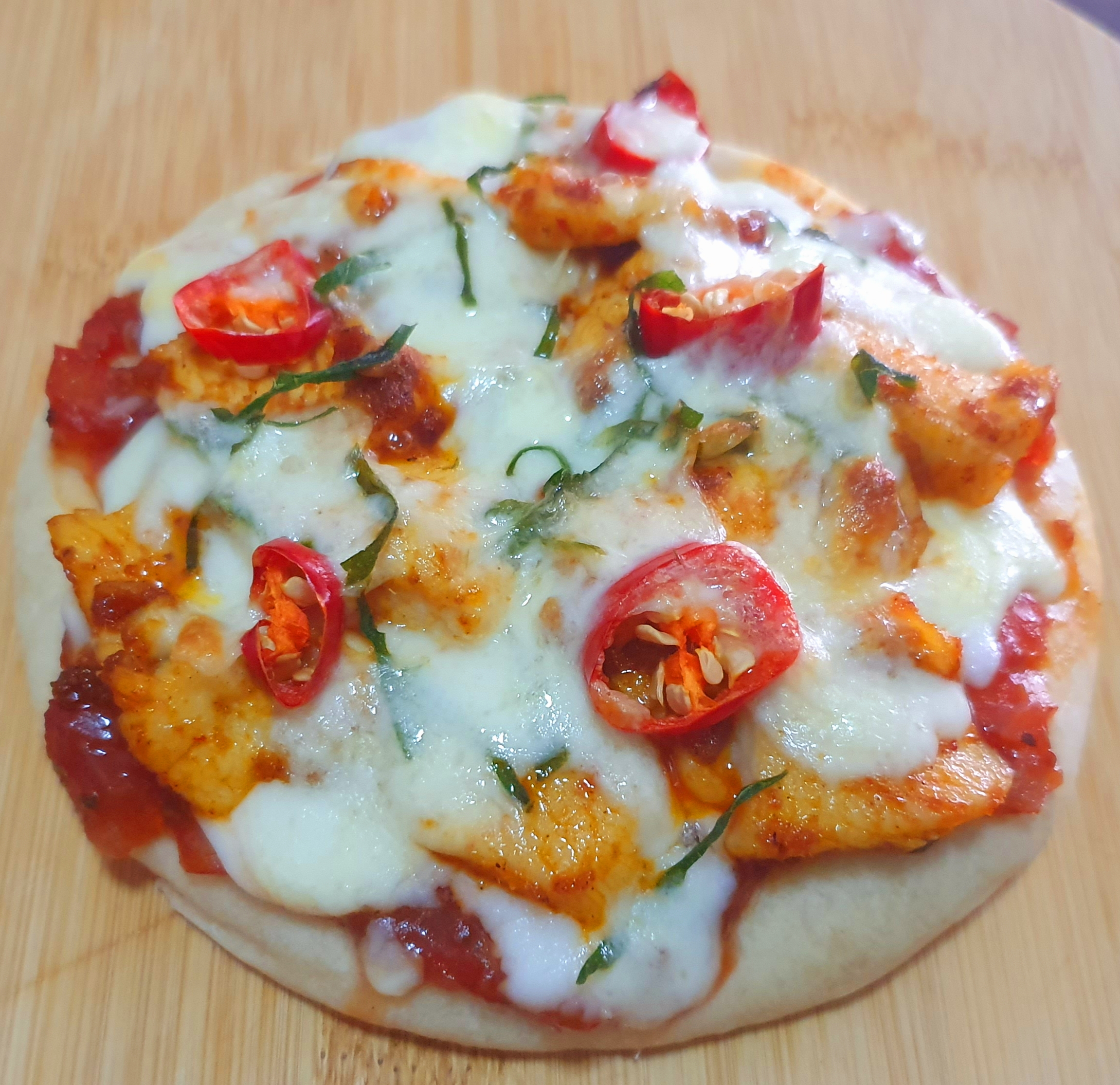 ทำจากแป้งพิซซ่า และซอสพิซซ่า สูตรพิเศษ โรยหน้าด้วยมอสซาเรลล่าชีส ใส่ท็อปปิ้งเป็นไก่ซอสพะแนง และโรยหน้าทับด้วยมอสซาเรลล่าชีสอีก 1 ชั้น